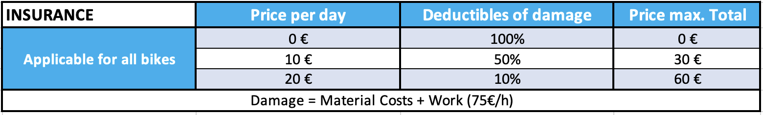 Write us an e-mail or give us a call and we will find the right offer for your rental bike!